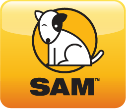 A logo with red and blue text that says "SAM SPECTRA".